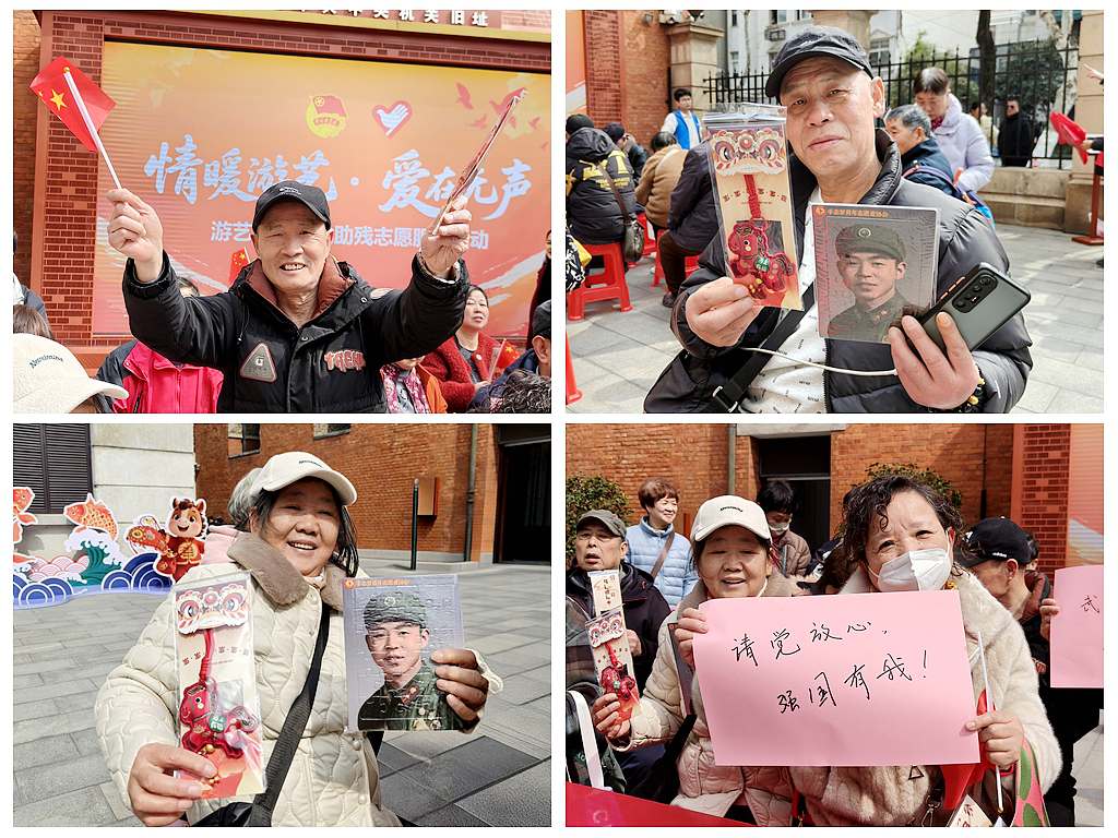 武汉中共中央机关旧址纪念馆内,《我爱你中国》旋律缓缓流淌。志愿者与老人们相对而立,六十双手同时举起,指尖跟随节奏轻轻舞动——比出“我”,比出“爱”,比出“中国”。手起手落间,无声胜有声。有人眼眶泛红,有人嘴角含笑,指尖流淌的,是对祖国最深情的告白。随后,志愿者们递上彩笔与卡纸,老人们低头认真书写:“我爱你,祖国”——一笔一画,郑重虔诚,举着卡纸彼此端详,笑容在脸上慢慢漾开。最后,志愿者们捧出精心准备的礼物:寓意“奉献精神代代相传”的雷锋拼图,以及象征“活力与吉祥”的憨态可掬的马年小马挂件——每一份礼物都藏着对老人们最朴素的祝福。一位老人接过小马,翻来覆去看了又看,忽然抬头用手语比划:“像我的小孙子。”众人皆笑。这个上午,纪念馆的红墙静静见证着一切,老人们把这份温暖捧在掌心,也揣进了心里,带回了家。