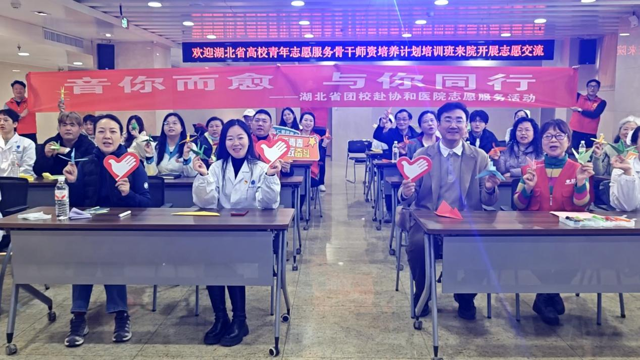 3月5日,第63个学雷锋纪念日当天,湖北省团校联合武汉大学、湖北大学、湖北第二师范学院、湖北医药学院、湖北文理学院、湖北工程学院等高校青年志愿服务骨干,走进协和医院开展“音你而愈 与你同行”主题志愿服务活动。面向高血糖慢性病患者及一线医护人员,志愿者们以快闪科普、音乐疗愈、手工折纸等形式,送去一份特别的“心灵问候”。