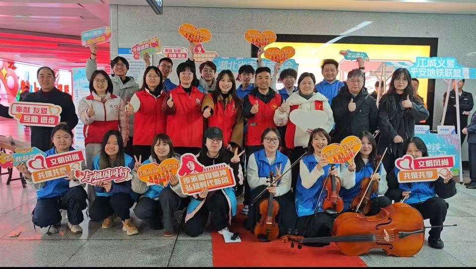 活动现场,志愿者们精心策划了知识竞答、精神宣讲、沉浸式体验等丰富环节,让过往市民在互动中感受雷锋精神的时代内涵。来自湖北工业大学的青年志愿者带来精彩的器乐演奏,一首首红色经典曲目在地铁站内悠扬回荡,吸引了不少市民驻足聆听、观看,大家踊跃参与各类游戏互动,现场氛围热烈温馨。“在地铁站参加这样的活动特别有意义,让我重新深入理解了雷锋精神,今后我会把这种奉献精神融入工作和生活,争做一颗永不生锈的‘螺丝钉’。”一位市民有感而发。